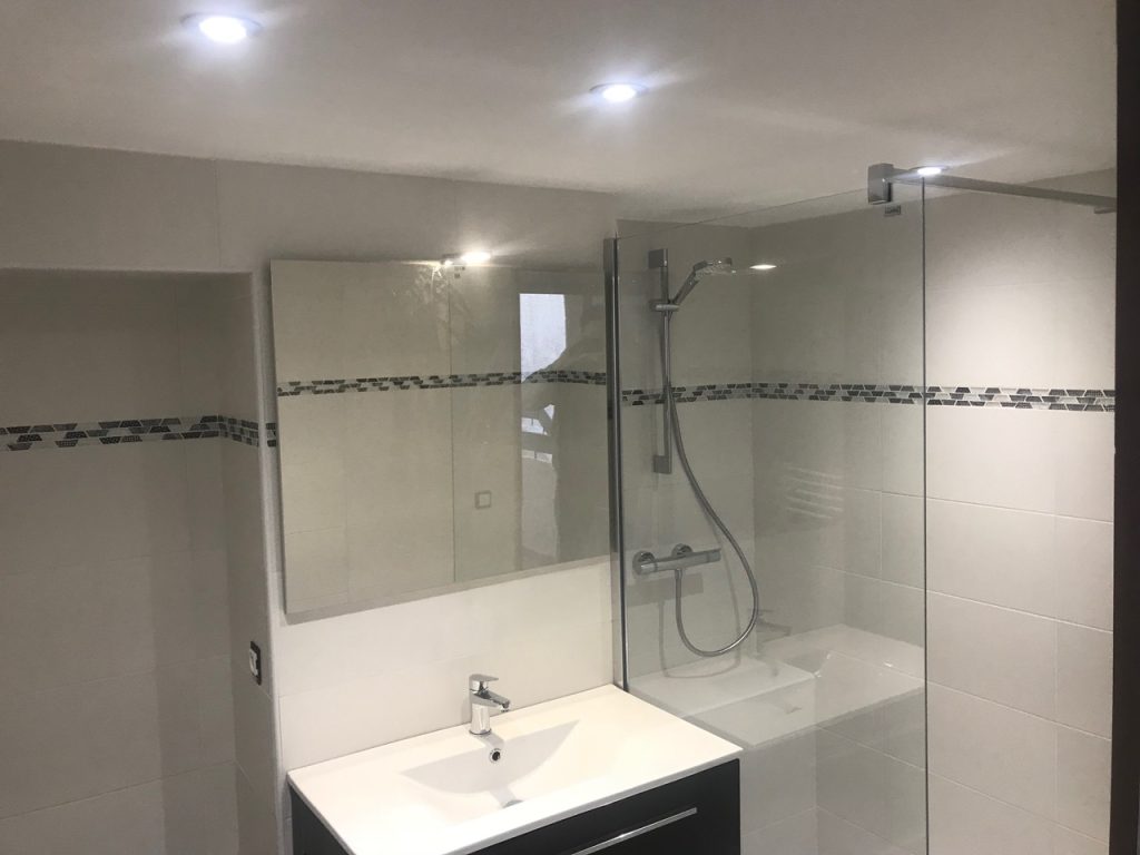 Nous installons également des faux plafonds suspendus sous une ossature métallique. Nous pouvons y encastrer les spots et autres luminaires.